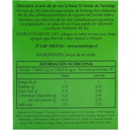 Te Twinings Verde 20 Gr 10 Ud 8287