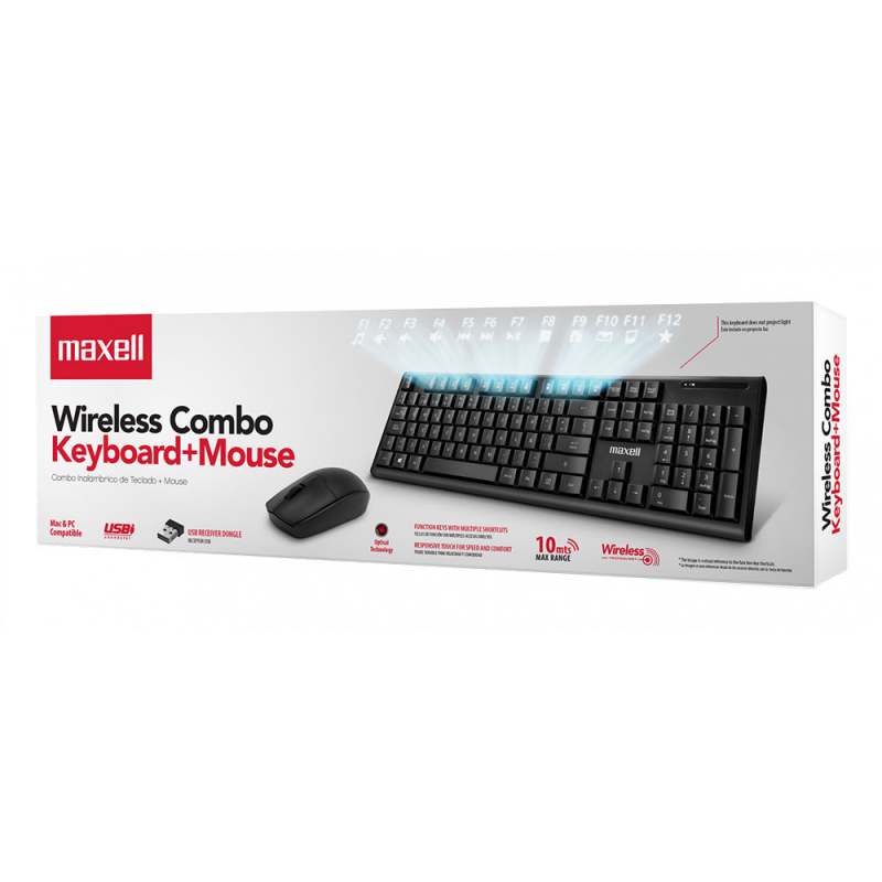 Combo de teclado inalámbrico con pad numérico y mouse inalámbrico, Receptor USB, tecnología inalámbrica 2.4GHz que controla a la vezRango inalámbrico de hasta 8 metrosTeclas de comando directo en la parte superior para accesos directos y funciones multimediaTeclas sensibles para velocidad y comodidadResolución del mouse de 1000dpiSoporte de inclinaciónOrificios de drenaje para accidentes o derrames de líquidos sobre el mismoCompatible con MAC y Windows