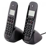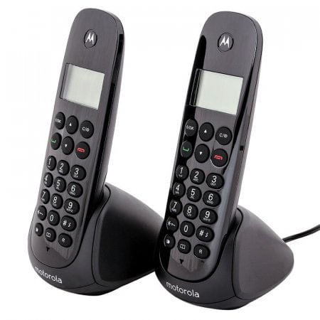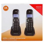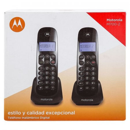 Set de 2 Teléfonos Motorola E TELM700-2CA–Negro Puedes disfrutar de la comunicación a través de este set de 2 teléfonos de color negro, ideales para tu hogar u oficina. Son expandibles hasta cinco auriculares, tienen identificador de llamadas, la pantalla iluminada en azul, posee un directorio para que puedes almacenar todos los contactos con 20 memorias, almacena las últimas 10 llamadas, también tienen 5 memorias de remarcado, posee alarma despertadora, libres de interferencias para que puedas tener una comunicación sin ningún tipo de interrupción. Incluye base telefónica, adaptador de voltaje, base con adaptador adjunto, cuatro baterías AAA recargable/s, cable de línea telefónica y manual del usuario, tienen un diseño moderno. Set 2 teléfonos Expandibles hasta cinco auriculares Tienen identificador de llamadas Pantalla iluminada en azul Directorio con 20 memorias Alarma despertadora Libres de interferencias Incluye base telefónica, adaptador de voltaje, base con adaptador adjunto, cuatro baterías AAA recargables, cable de línea telefónica y manual del usuario.