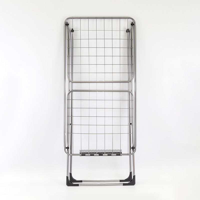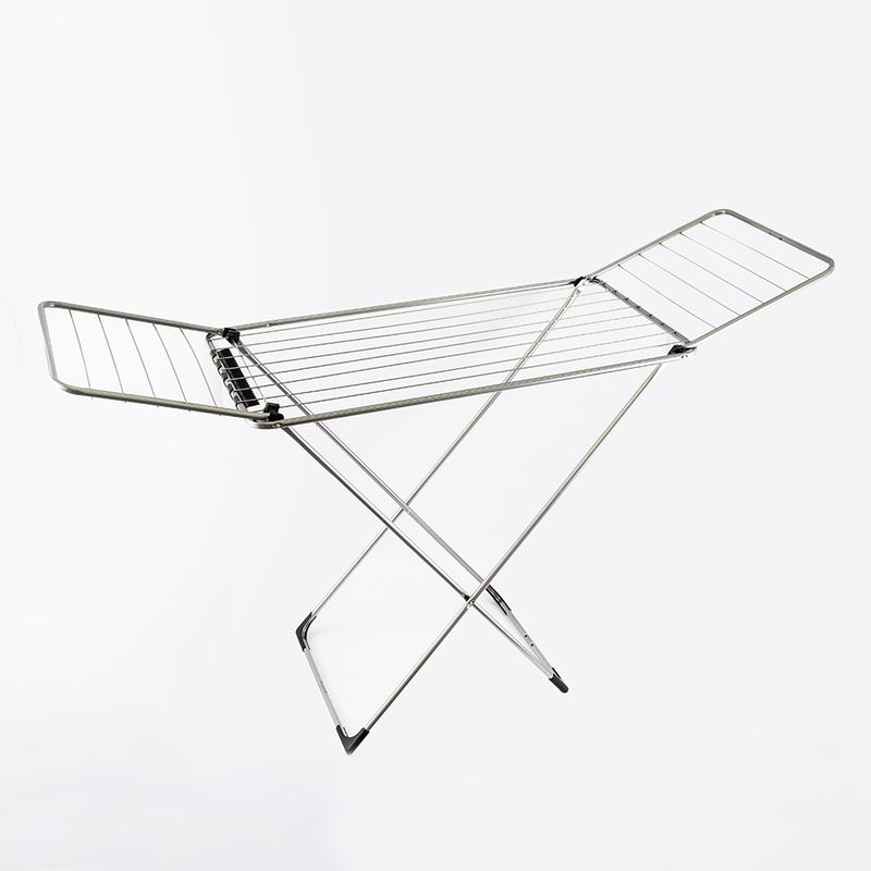 Tendedero metálico en color plateado, resistente, ideal para el secado de ropa. Incluye una caja organizadora gratis, perfecta para almacenar prendas o accesorios y mantener el espacio más ordenado.
