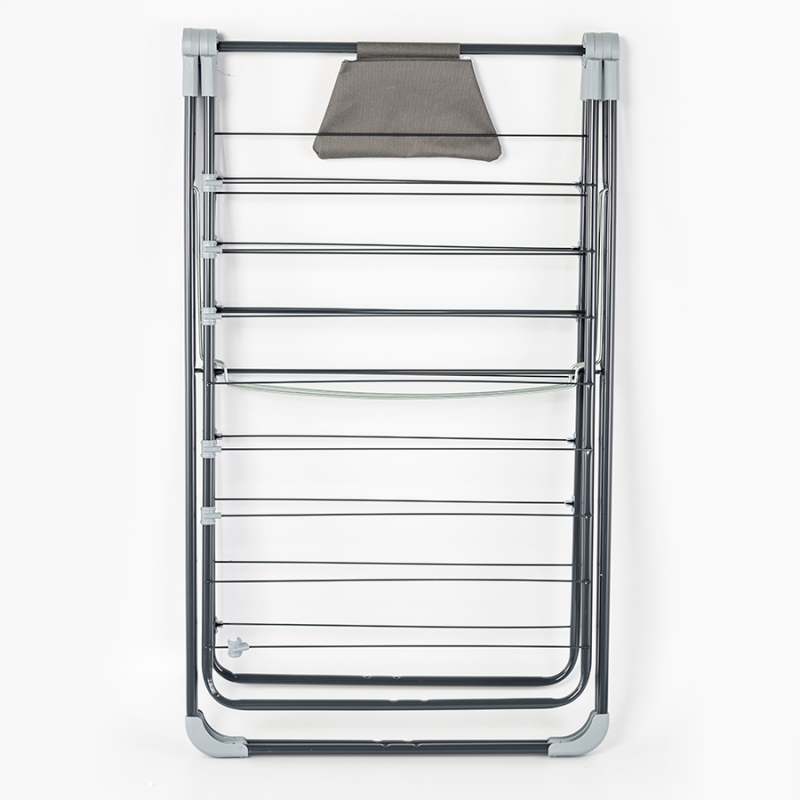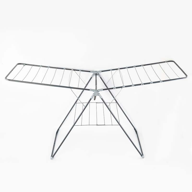 Tendedero para ropa metálico plegable fácil de transportar, compacto para ahorrar espacio.