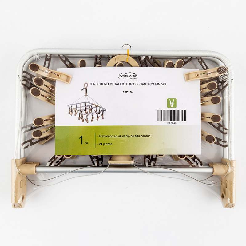 Tendedero colgante 24 pinzas elaborado en aluminio de alta calidad