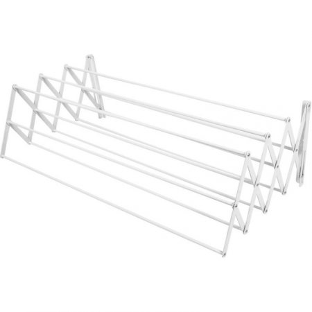 Contiene 6 chazos. 6 Tornillos. 11 Barras para colgar ropa. Estructura en forma de acordeón.
