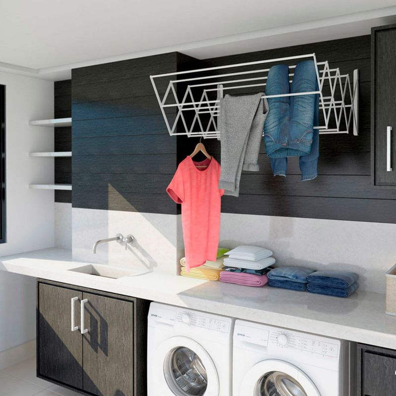 Tendedero de pared en aluminio, ligero y duradero, perfecto para secar ropa y aprovechar mejor el espacio.