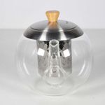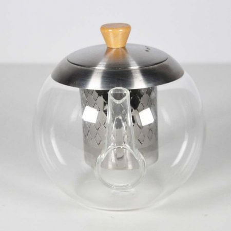 Tetera está hecha de vidrio resistente al calor, diseñado con boquilla antigoteo y mango ergonómico. La tetera viene con una cesta de acero inoxidable, la cual funciona como colador de té, sostiene bolsas de té o hojas de té sueltas, frutas o infusiones. Capacidad de 815 ML