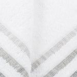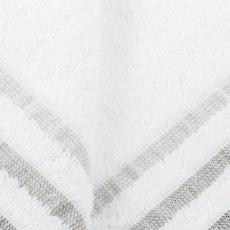 Toalla para manos, 380gr, elaborada 100%algodón, color blanco diseño de lineas en la parte inferior en varios tonos de gris, superficie suave al tacto, practica y absorbente. Dimensiones: 40x65cm