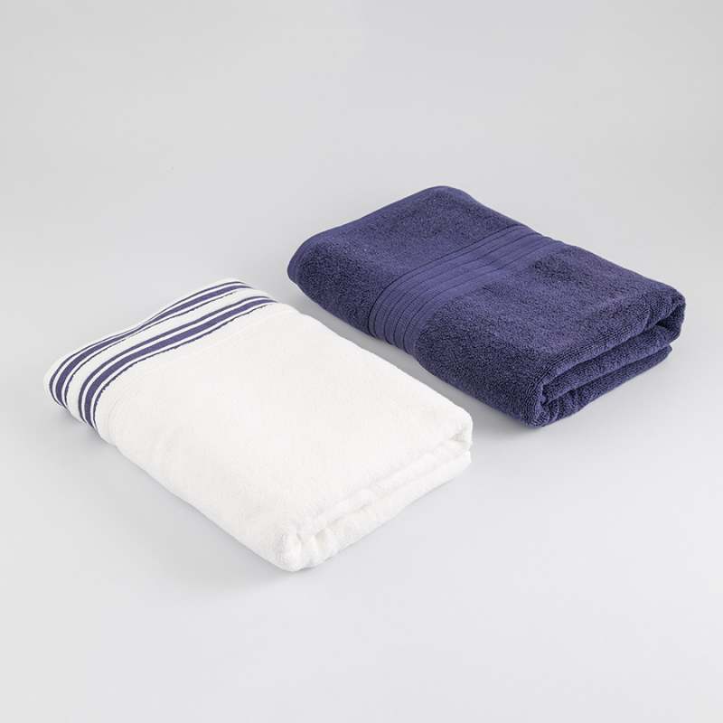 Setx2 toallas de cuerpo 100% algodón 550gsm Expressions 1 toalla blanca + 1 toalla azul navy dimensión 140x70cm