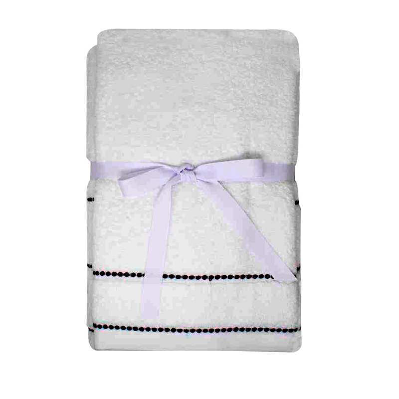 Toalla, 2 unidades, 580gr, color blanco/azul, se recomienda lavar antes de usarla, al momento de lavarla, no usar blanqueadores, ni suavizantes, secar a temperatura media. Dimensiones: 50x70cm, 70x150cm