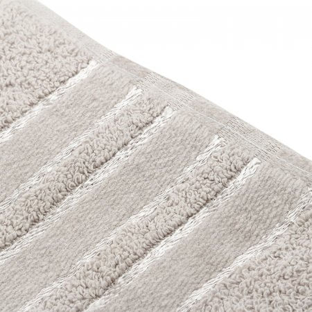 Toalla para cuerpo, 500gr ,elaborada 100% algodón, color gris, diseño de tres lineas inferiores color gris oscuro, gracias al algodón es suave al tacto, practica y tiene un excelente grado de absorcion. Dimensiones: 70x140cm