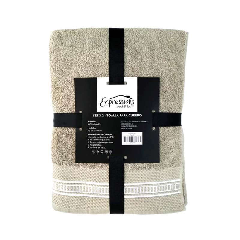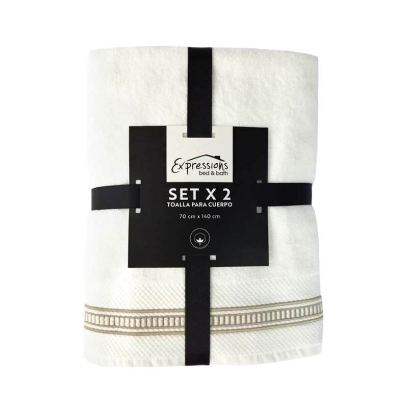 Setx2 toallas de cuerpo 100% algodón Expressions incluye: 1 toalla blanca + 1 toalla taupe dimensión 70x140cm