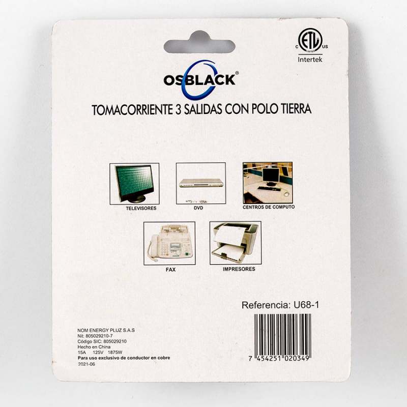 Complementos HogarEléctricosMultitomasToma Equalizable Osblack Polo A Tierra 1875W 15 Am 125 V U68-1