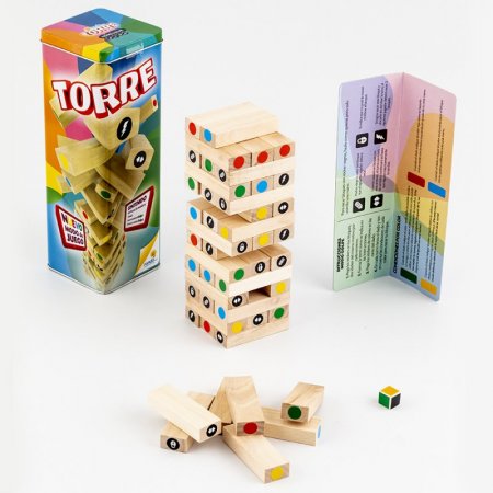 Llega bien alto y Gana, remueve una pieza en cada turno y colócala en la parte superior sin derribar la torre, continua hasta que la torre se caiga. Edad recomendada 8 años en adelante.
