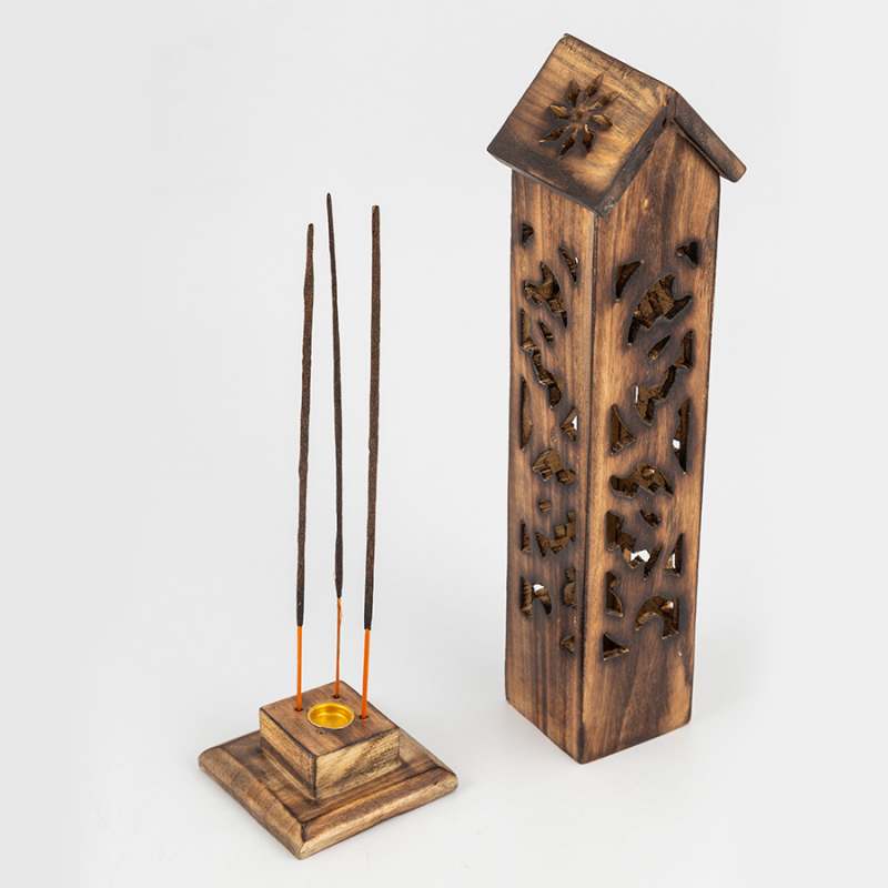 Inciensos + Torre Se trata de tu hogar, el principal y único espacio íntimo donde se convive tanto con familiares como con colegas del trabajo o de estudio. Por ello, es costumbre dedicarle una cantidad de tiempo adicional para lograr dar con los mejores productos para así mantenerla: aquellos que reúnen calidad, durabilidad y utilidad. El mejor amigo de cada hogar son todos los productos, herramientas, utensilios o artefactos que permiten realizar más fácil las tareas cotidianas, por otra parte, complementan el estilo y decoración de tu hogar. Los accesorios para tu hogar son importantes para que encuentres confort y seguridad al estar con quienes más amas; es por ello que debes asegurarte de tener la mejor calidad en cada uno de sus detalles. Set de ocho inciensos y torre, torre elaborada en madera con incrustaciones en bronce de color café, para ubicar en sentido horizontal o vertical, tiene diseño de elefantes en color dorado, inciensos con aroma a canela, elaborados con bambu, mezcla de hierbas y raices secas, carbon seco y pegante jigat, práctico set, para poner en cualquier espacio del hogar, elaborado en India. Siempre se recomienda tomarse el tiempo necesario para hacer una buena elección de los productos que utilizaremos en nuestro hogar, esta marca se distingue por la calidad y rigurosidad en la elaboración de todos sus productos, No te arrepentirás, sin duda alguna, de tu elección. Torre elaborada en madera con incrustaciones en bronce Color café Para ubicar en sentido horizontal o vertical Tiene diseño de elefantes en color dorado Inciensos con aroma a canela Elaborados con bambu mezcla de hierbas y raices secas carbon seco y pegante jigat Práctico set Para poner en cualquier espacio del hogar