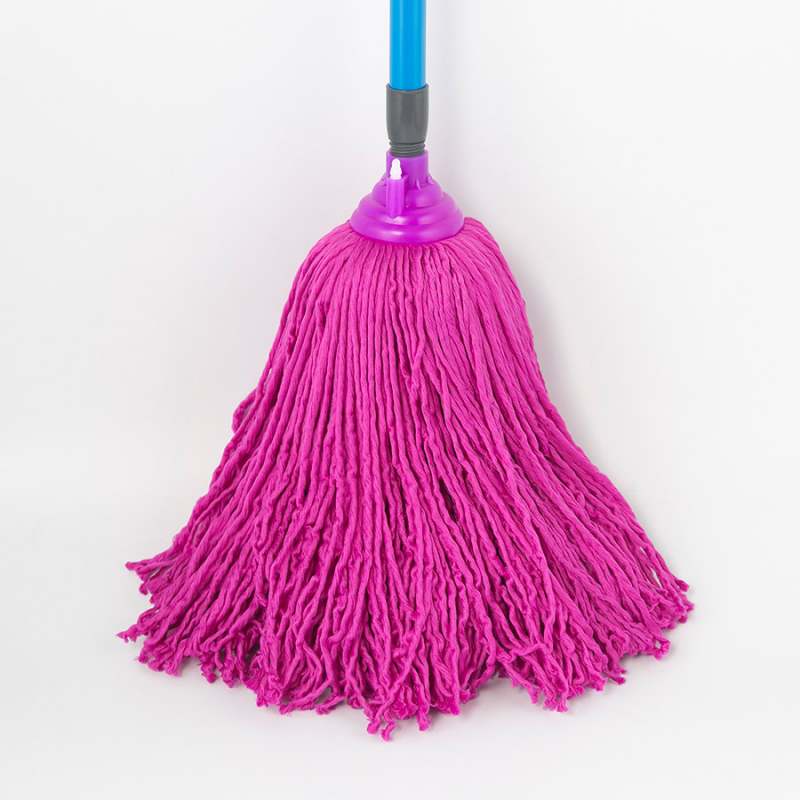 Un trapero de microfibra fucsia de 280 gramos, con un cabo laminado de 140 cm. Ideal para una limpieza vibrante y efectiva.