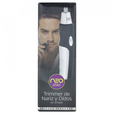 Trimmer Neo Sens Negro con revestimiento en goma y cuchillas en acero inoxidable. Además, permite eliminar con facilidad los pelos anti.estéticos. Ideal para nariz y oidos. Tiene mando ergonómico para máximo control. Función con batería AA (no incluidas). Incluye cepillo pequeño de limpiez. Ideal para viajes Diseño práctico y ligero