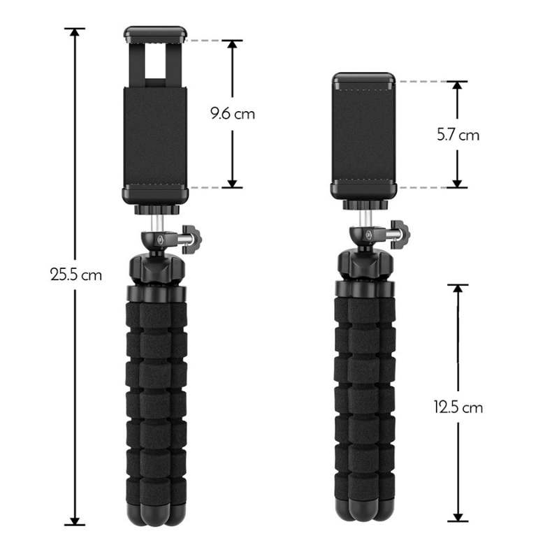 Toma fotos y videos espectaculares sin que salgan borrosos, movidos o fuera de cuadro, con ayuda de este mini tripié. Sus patas flexibles (tipo gusano) se ajustan en múltiples posiciones para lograr el ángulo perfecto, incluso puede colocarse en estructuras tubulares o ramas de árboles; la sujeción será firme y segura. Ideal para dejarlo en una posición y tomar fotos con el temporizador de tu celular o cámara. Es compatible con cualquier smartphone, gracias a su sujetador de presión, y con cámaras digitales por el tornillo universal ubicado en la base. Tiene tamaño realmente compacto, por lo que lo podrás llevar sin problema a cualquier lugar. Patas multiposición Compatible con cámaras y smartphones Compacto y ligero