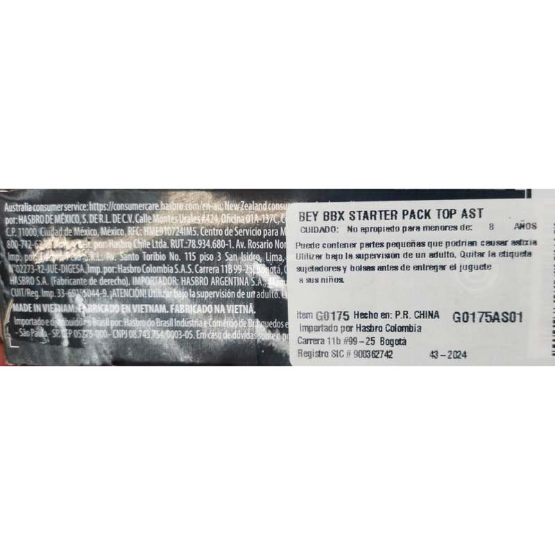 Trompo Beyblade Starter Pack Top Ast. / Plástico: Multicolor. Ideal para estimular las habilidades, de competencia de los niños. Uso: - Lanzan contra el oponente, en una velocidad extrema, anotando puntos en cada confrontación, ó choque. - El primero en anotar 4 puntos será el ganador. Recomendaciones: *Edad Sugerida: + 8 Años. *No es adecuado para menores de 8. *Utilizar bajo la supervisión de un adulto. * Producto contiene partes pequeñas, no ingerir.