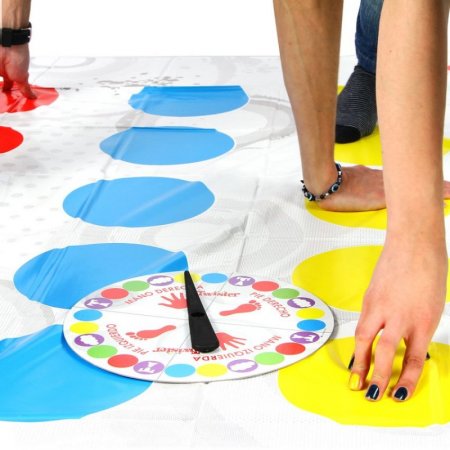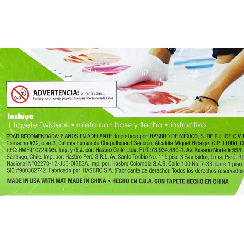 Twister es el juego que hará que los niños se diviertan mientras se retuercen. Además de los clásicos movimientos que tiene Twister esta renovada versión cuenta con dos nuevos movimientos que podrán salir al girar la ruleta. ¡Con estos movimientos se conseguirán aún más enredos! 1 tapete Twister 1 ruleta con basey flecha Instructivo 6 AÑOS EN ADELANTE