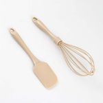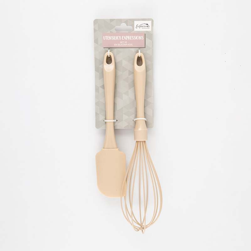 Set X2. Utensilios Expressions: Herramientas perfectas para tu cocina. La silicona de alta calidad es flexible y resistente al calor, lo que te permite mezclar, voltear y extender con facilidad.Con un diseño moderno y elegante, no solo es funcional, sino que también añade un toque de color a tu cocina. - Color: Beige.- Materiales: Silicona.- Dimensiones Espátula: 24.5 X 5 Cm.- Dimensiones Batidor: 29.5 X 6.5 Cm.