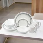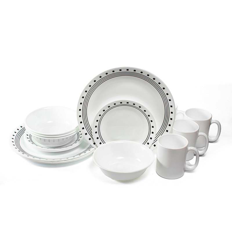 Corelle Vajilla 4 Puestos Rayas Negras Y Cuadrados Llamativos Le Dan A Esta Vajilla De 16 Piezas Un Toque Urbano. Cada Pieza Tiene Un Diseño Diferente, Y Las Formas Se Superponen Para Lograr Un Look Informal Y Contemporáneo, Ideal Para El Día A Día Y Para Recibir Invitados.