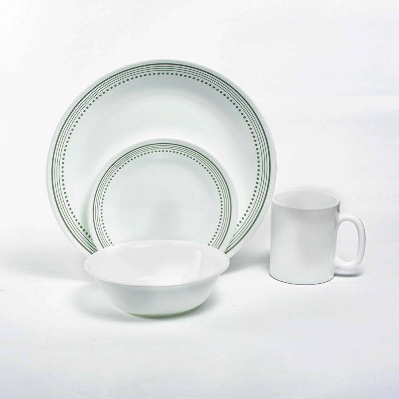 Corelle Vajilla 16 Piezas Acentuado Con Franjas Y Lunares En Gris Paloma, Este Juego De Vajilla Combina Un Estilo Clásico Con Un Toque Desenfadado. Su Discreto Estampado Ofrece Un Aspecto Versátil, Ideal Tanto Para Comidas Diarias Como Para Ocasiones Especiales.