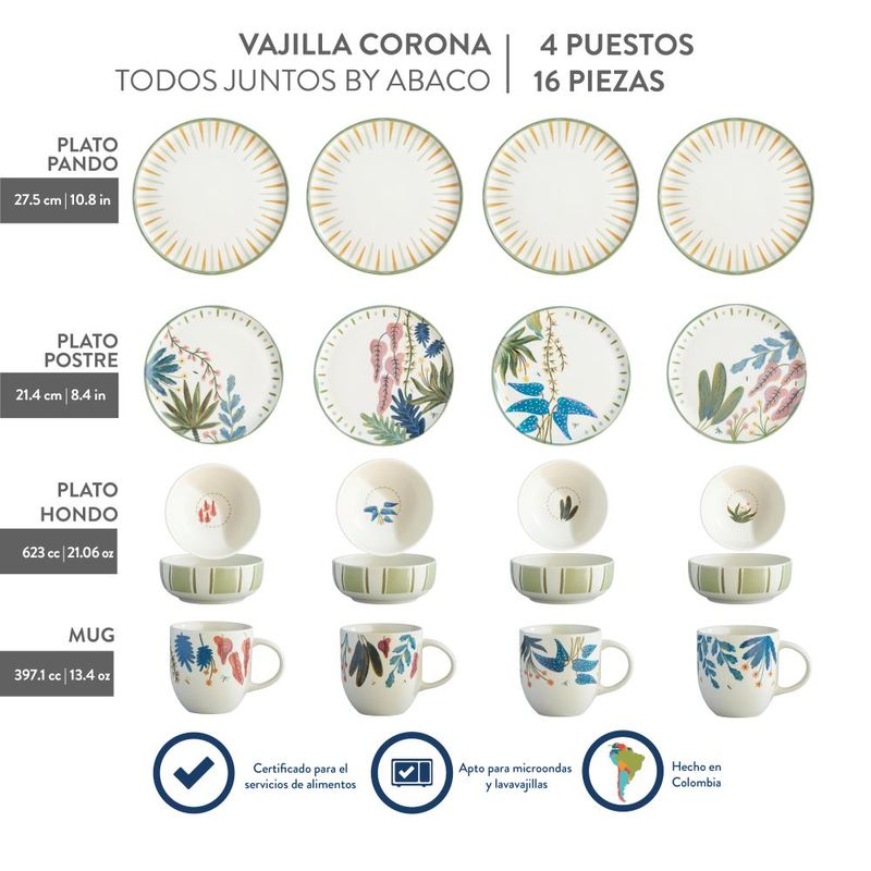Vajilla Corona Abaco Multicolor 16 Pz Ceramica Vl169K040116