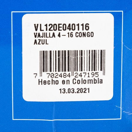 Vajilla Corona Congo Azul 16 Pz Ceramica Vl120E040116