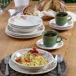 Exquisita sutileza a la hora de servir la mesa en el jardín o en una terraza. Combinación de flores y hojas inspiradas en la belleza, la armonía, y toda la riqueza natural. - Apto para microondas y lavavajilla. - Aprobado para el uso en contacto con alimentos. Cumple con la norma de plomo y cadmio. - Se garantiza que el esmalte no va a generar agrietamiento por cualquier cantidad de lavado con detergentes. - Resistencia de la decoración a los detergentes.