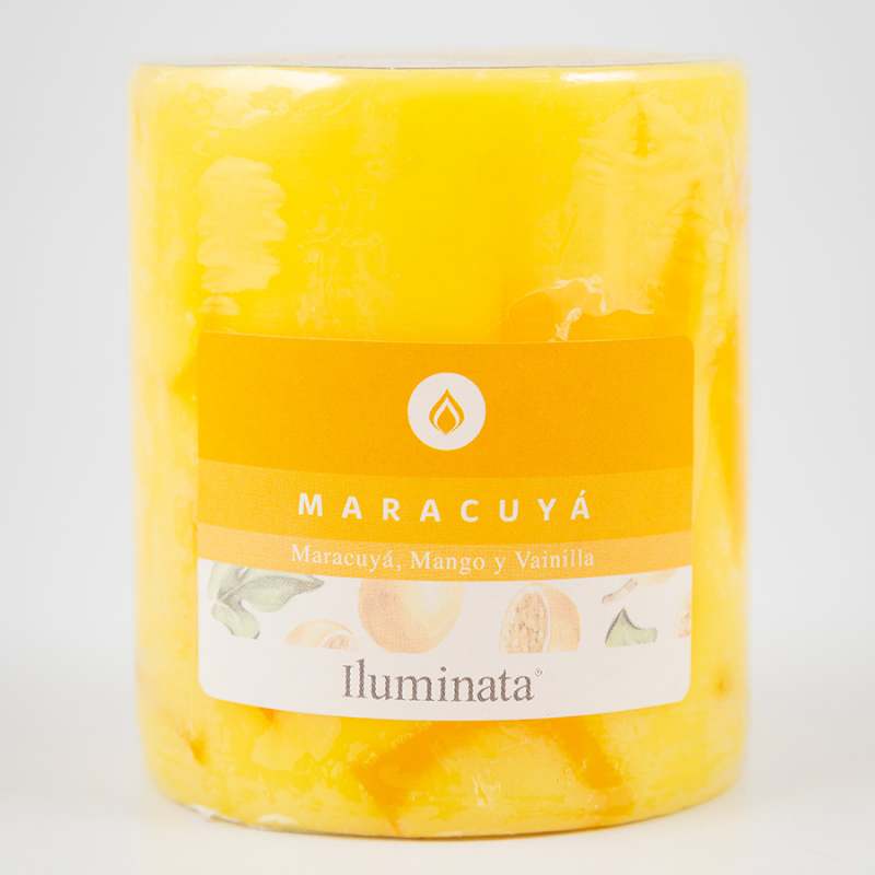 Vela Pilar 33 con aroma logrado de esencias naturales Aroma: Maracuya Recomendable usar sobre una base,evitar corrientes de aire. Esta vela no ahuma, no chorrea.