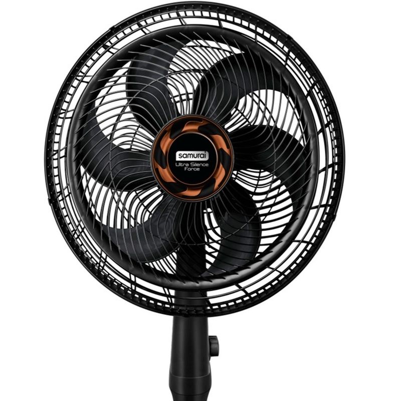 Ventilador de pedestal Samurai Ultra Silence Force con 5 velocidades y potencia de 90 W, diseñado para proporcionar un flujo de aire potente y constante en ambientes cálidos, con estructura estable, gran tamaño de aspas de 18 pulgadas y funcionamiento silencioso ideal para uso en sala, habitación u oficina; producto distribuido por Groupe SEB Andean S.A., fácil de limpiar y mantener para confort diario en el hogar.