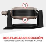 Waflera Black+decker Giratoria Prepara 2 Waffles A La Vez 110v Waflera giratoria con funcion para Rotar y cocinar: el sistema de cocción especial permite que la gravedad haga el trabajo para producir waffles ideales y aireados. Prepara 2 Wafles a vez con la Waflera de Doble Giro de BLACK+DECKER®. Sus dos placas permiten cocinar 2 wafles a la vez para cocinar para toda la familia. Las ranuras antiadherentes extra profundas hacen espacio para todos tus ingredientes favoritos. Las luces de indicador muestran cuando la unidad está conectada y cuando se haya precalentado y listo para cocinar.