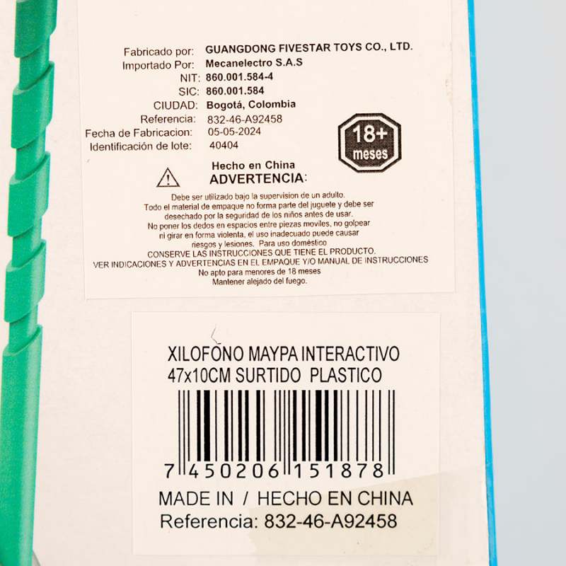 Xilofono interàctivo, diseño clásico, juguete musical educativo, ideal para nutrir el desarrollo cognitivo de los niños con efectos positivos de aprendizaje, estimulando la inteligencia de tu hijo, fabricado en plástico de calidad con delicados y hermosos colores, dimesiones del producto 47.3x10x31.3cm. Edad recomendada de uso mayor de 18 meses.