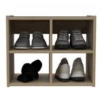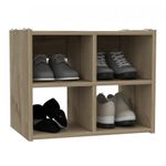 Mueble organizador en tablero aglomerado 100% melamina color duna cuenta con 4 espacios para guardar zapatos. la garantia es de 5 años en propiedades de la madera 1 año en propiedades de los herrajes. Medidas 41.2x51x33.4