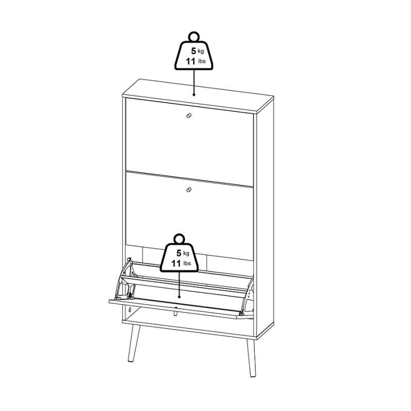 El zapatero Bodo es una solución de almacenamiento versátil y que ahorra espacio para tus zapatos. Con tres puertas plegables, este zapatero ofrece una forma discreta y cómoda de mantener tus zapatos bien escondidos. Tiene capacidad para hasta 18 pares de zapatos, lo que garantiza que tu calzado se mantenga organizado y sea de fácil acceso. Ancho 70,3 centímetros Profundidad 24,05 centímetros Altura 139,3 centímetro